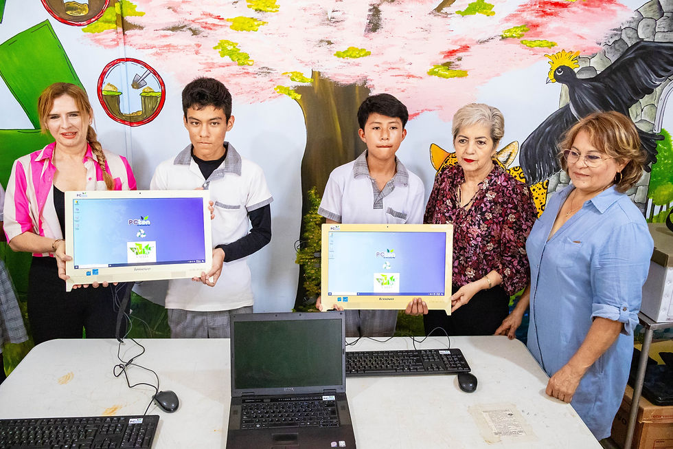 Gracias al programa PCtón, impulsado por la Dirección de Ecología Municipal en colaboración con la empresa Soluciones, cuatro estudiantes del ejido El Sidral, en Ciudad Valles, fueron beneficiados con computadoras ensambladas con componentes reciclados.